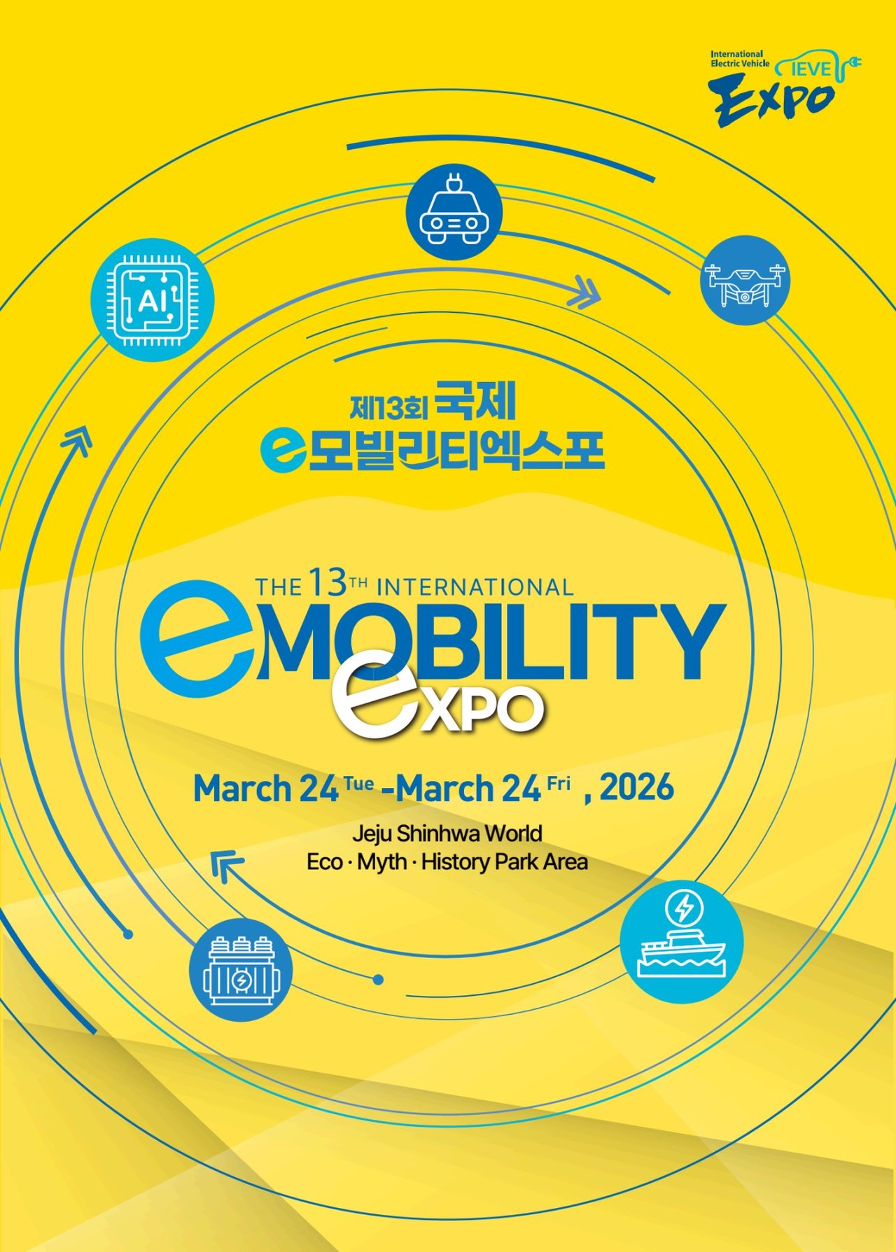 To help realize Carbon-Free Island Jeju 2035, the International e-Mobility Expo spotlights the latest issues in the rapidly evolving mobility and energy industries. It selects next-generation growth engines of the Fourth Industrial Revolution—robots, full autonomous driving, AI, UAM, electric vessels, green hydrogen, and more—as its key agenda, and drives dynamic economic growth through exhibitions, conferences, future-mobility experiences, and a variety of concurrent events.